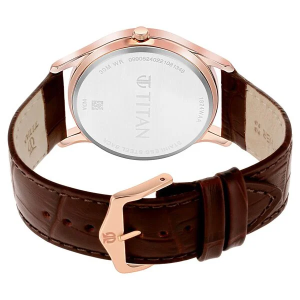 The leather strap adds comfort and a timeless appeal, ensuring a secure fit while enhancing the overall look of the watch. Powered by precise quartz movement, this analog watch provides accurate timekeeping and a smooth, reliable performance.