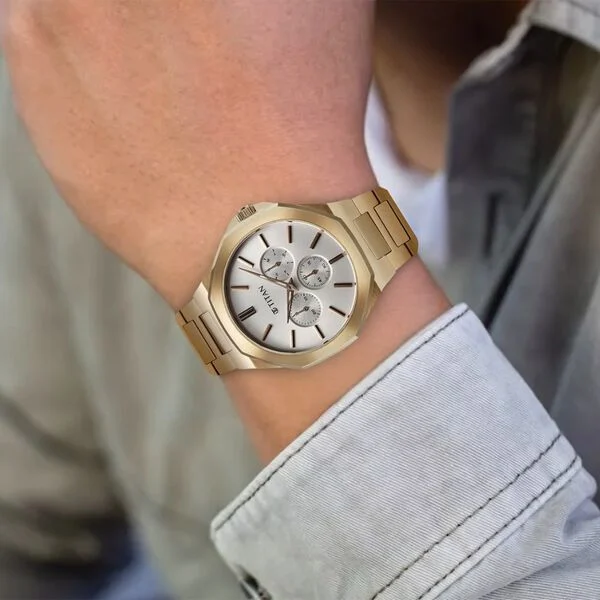 • Product Name: Titan Classic Slim Multifunction Silver Dial Carnation Gold Stainless Steel Strap Watch For Men