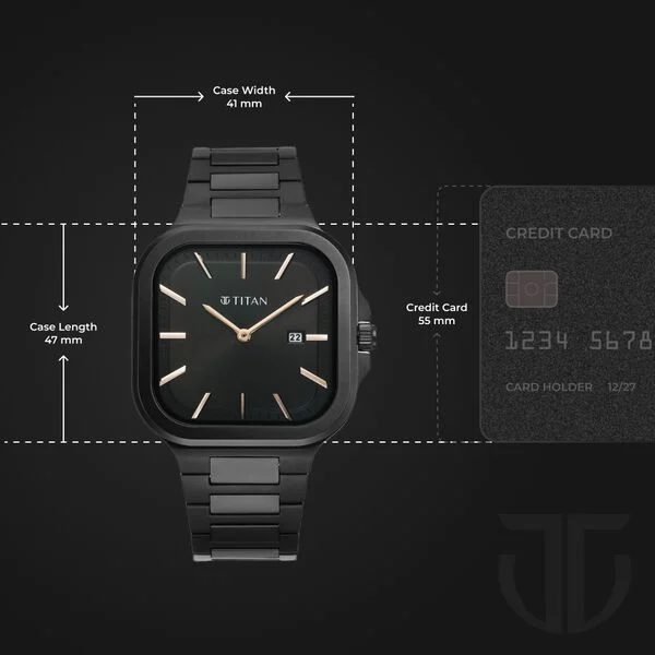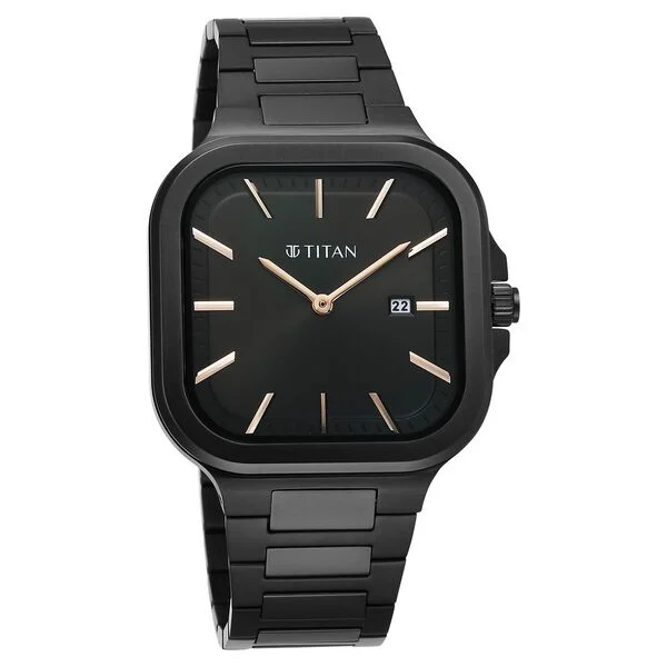 Product Name: Titan Classique Slim Square Quartz Analog with Date Black Dial Stainless Steel Strap Watch for Men
