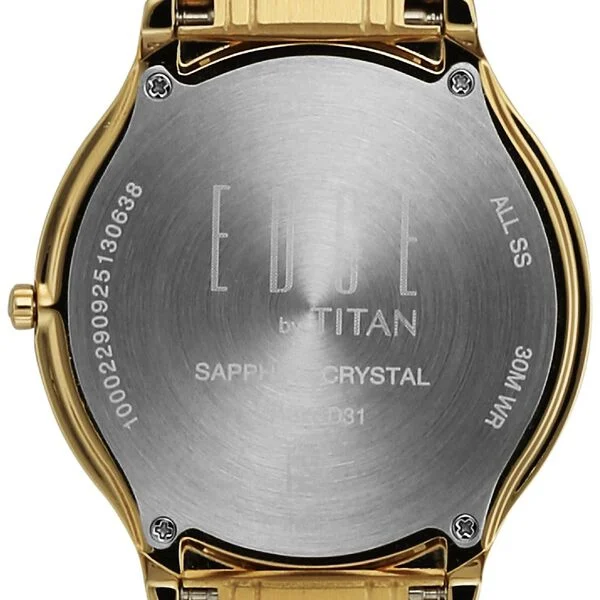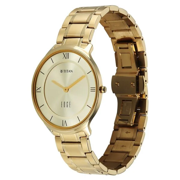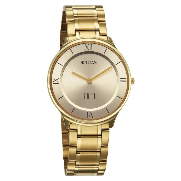 • Model Name: Titan Edge Gleam Quartz Analog Champagne Dial Golden Stainless Steel Strap Watch for Men