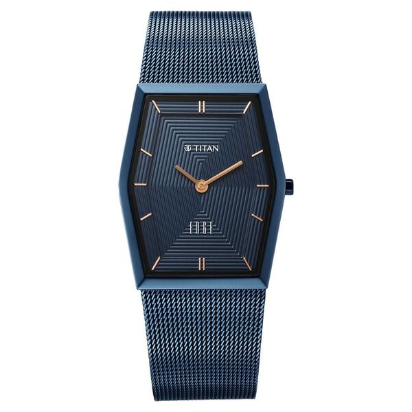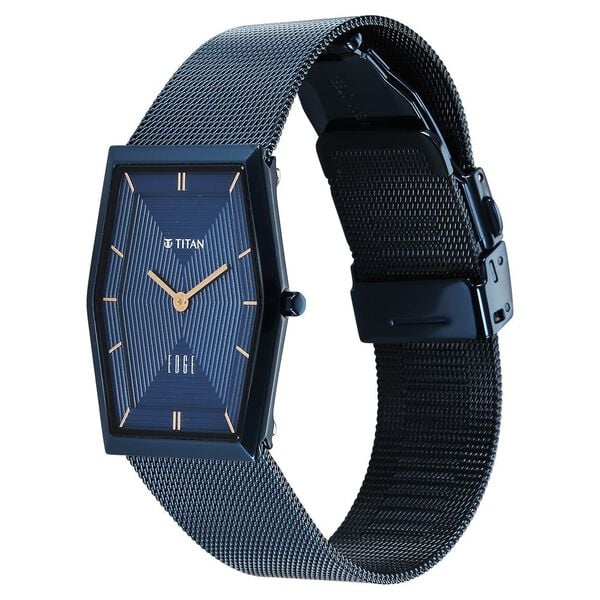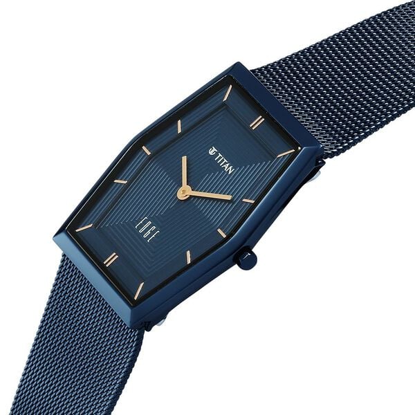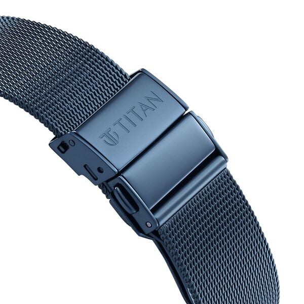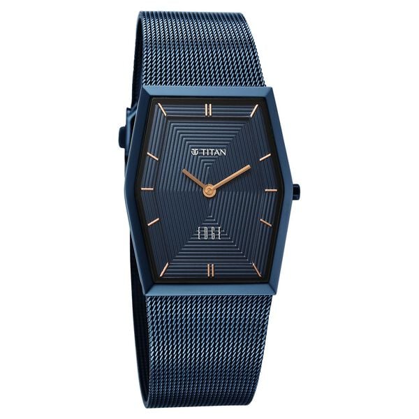 The matching blue stainless steel strap enhances durability while providing a polished, sophisticated finish. Crafted with Titan’s signature ultra-slim Edge design, the watch offers a lightweight and comfortable fit for all-day wear.