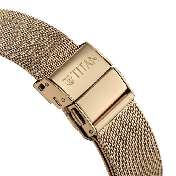 • Model Name: Titan Edge Whimsey Quartz Analog Brown Dial Golden Stainless Steel Strap Watch For Women