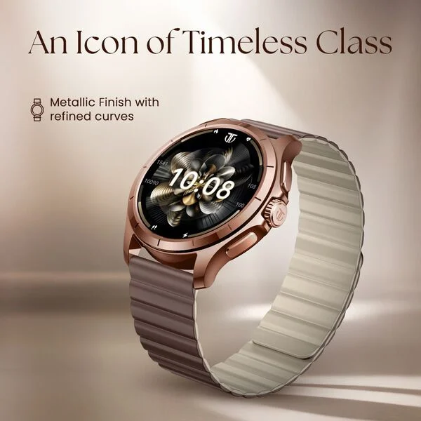The Titan Evoke 2.0 Smartwatch is a stylish and feature-packed wearable designed for those who want both elegance and smart functionality in their everyday accessories. Built with a sleek 43 mm metal case, the watch offers a premium look while maintaining durability and comfort. The magnetic strap ensures a secure and convenient fit, making it easy to wear throughout the day.