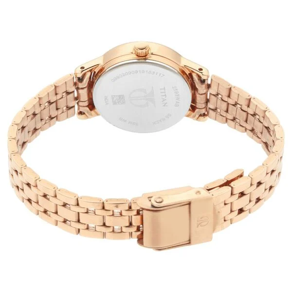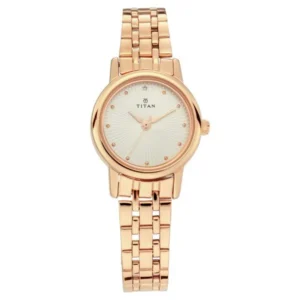 Model Name: Titan Quartz Analog Silver Dial Rose Gold Stainless Steel Strap Watch for Women