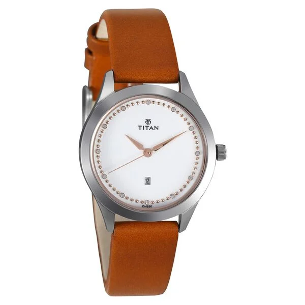 Shine every day with the Titan Sparkle Analog Watch for Women. Featuring a sparkling white dial with a date function, this elegant timepiece combines sophistication with everyday functionality.